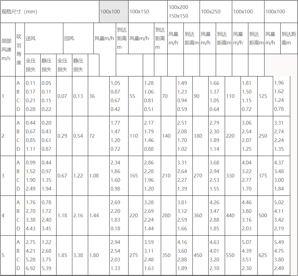 4� 靜壓、余壓損失單位為mmH2O
